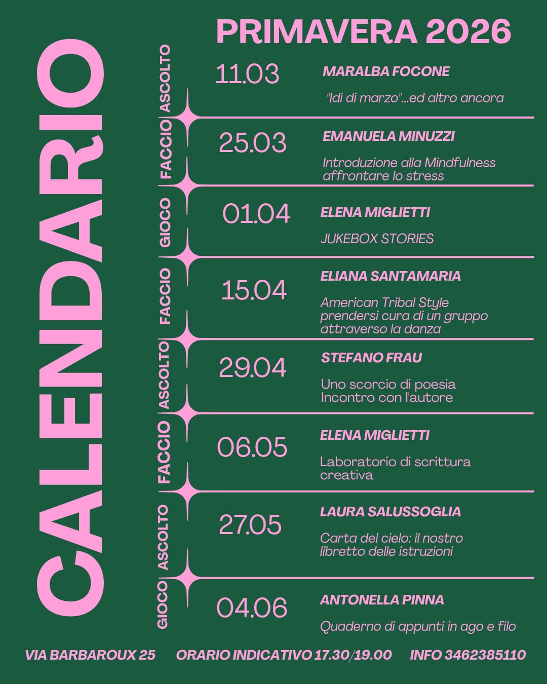 Calendario incontri 2026